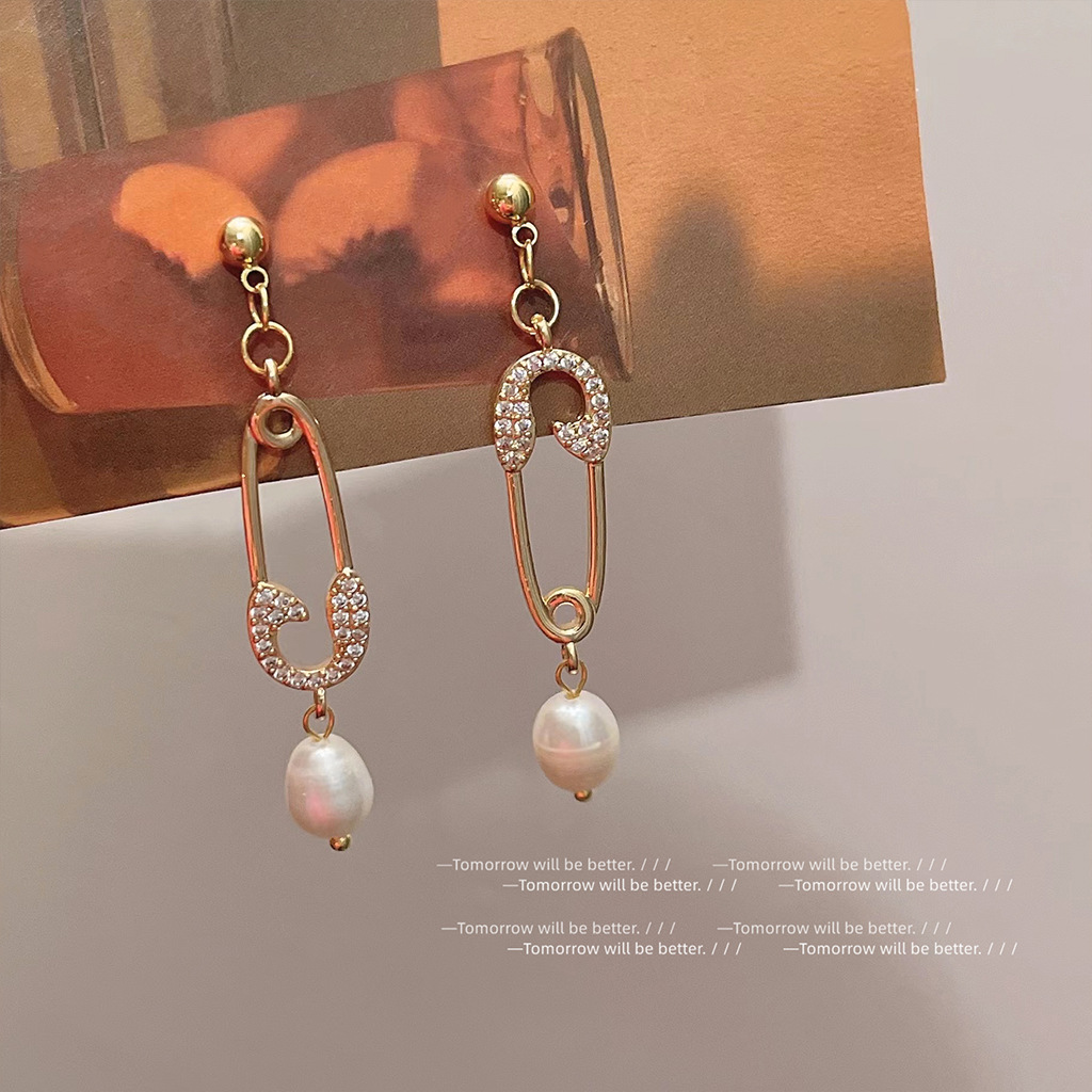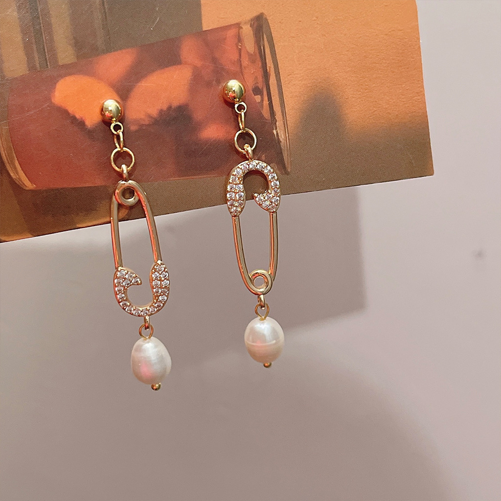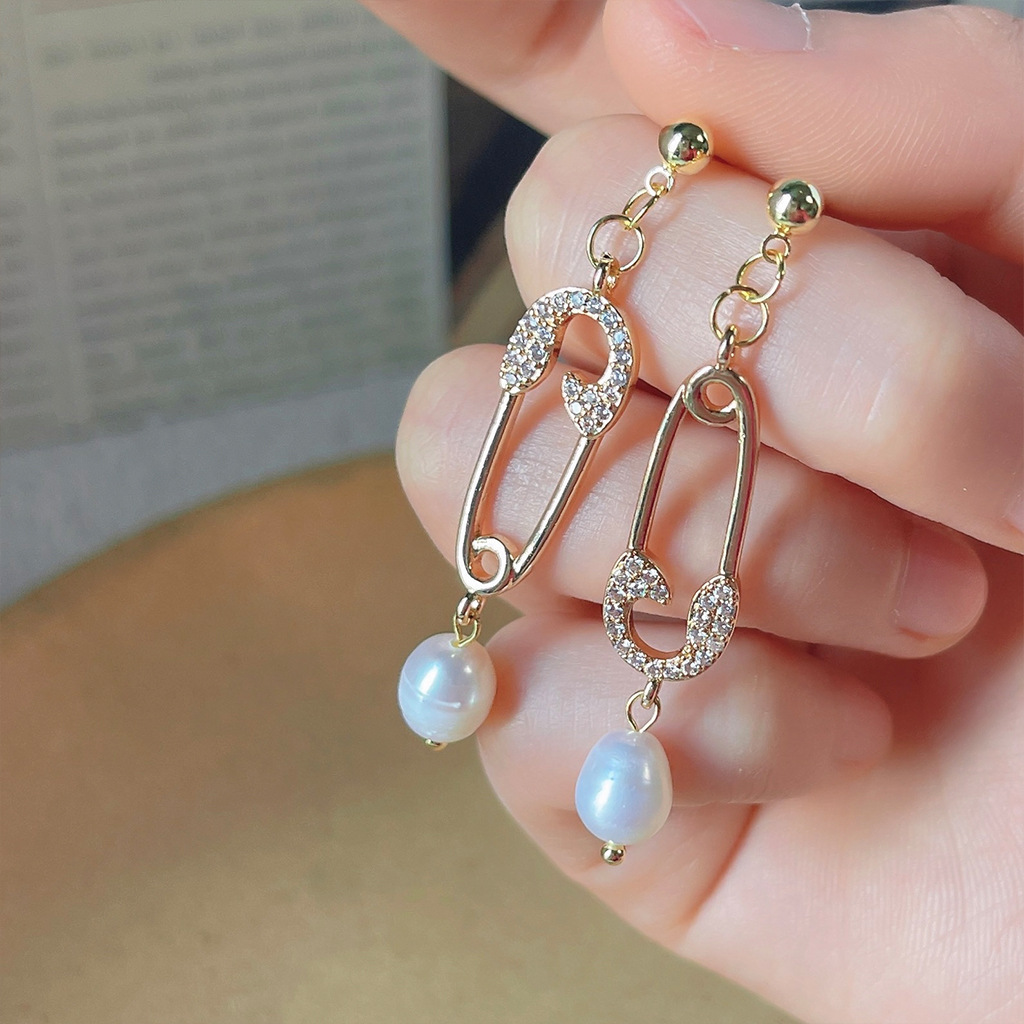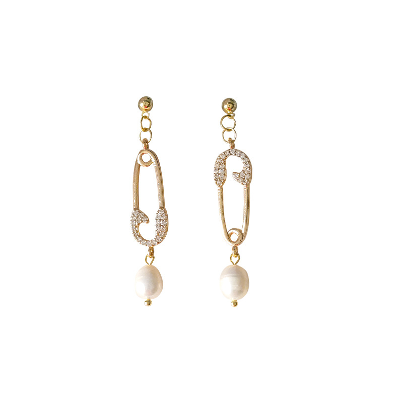 925 Silver Asymmetric Handmade Pearl Earrings with Micro-inlaid Zircon and 14K Plating