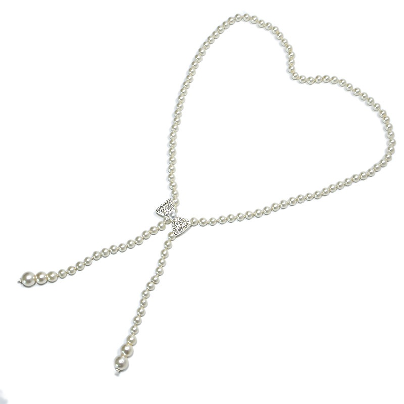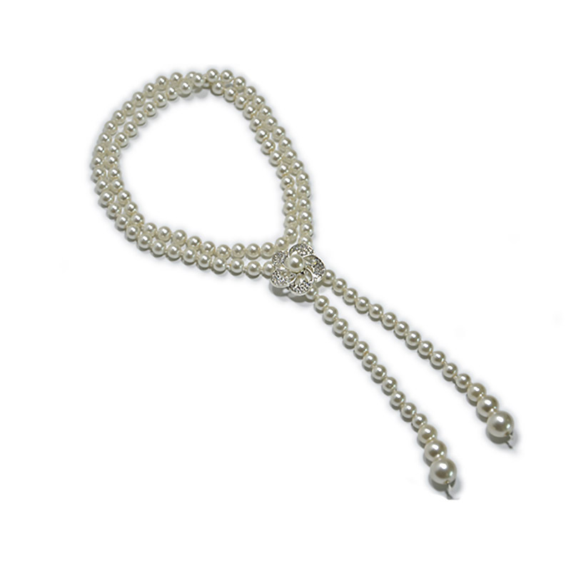 - ["Made of Tin Alloy for Durability","Suitable for Women of All Ages","Glass Pearls Decoration for Elegant Look","Single Circle Design for Easy Wear","105cm Length for Perfect Fit"]