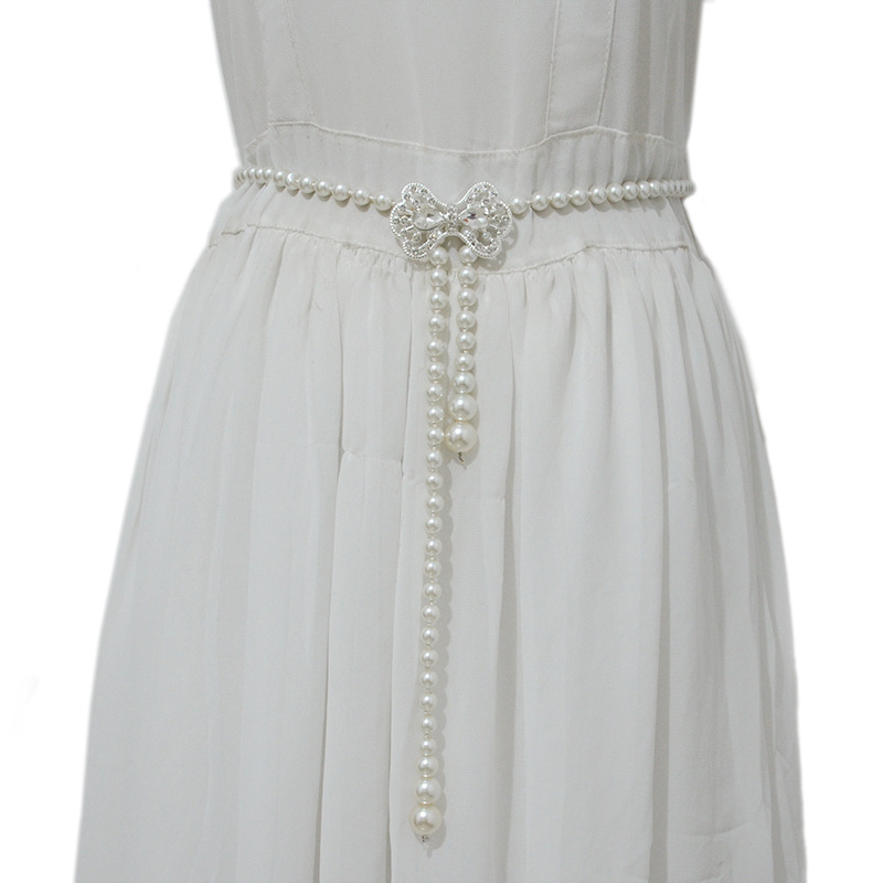 Fashionable Pearl Waist Belt for Women with Glass Pearls Decoration