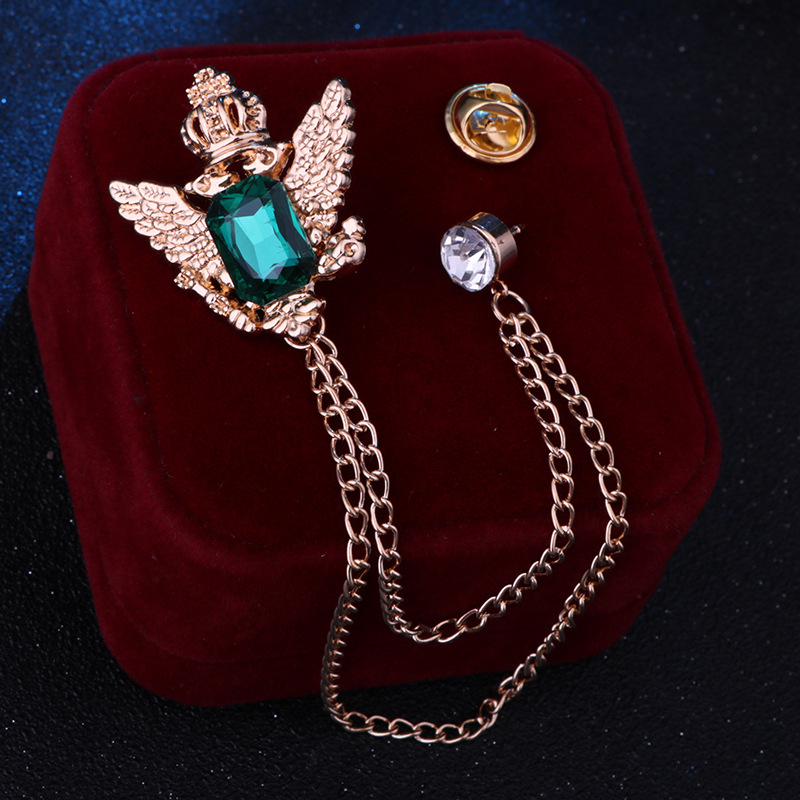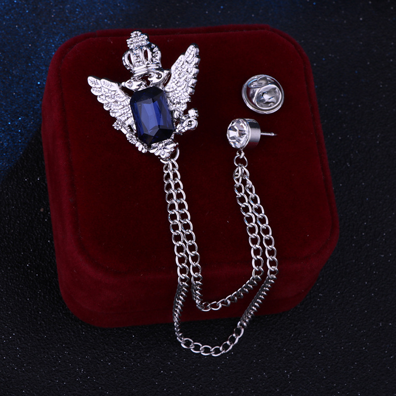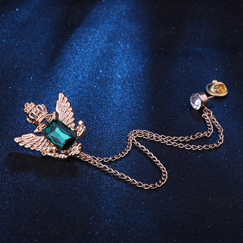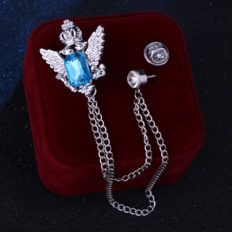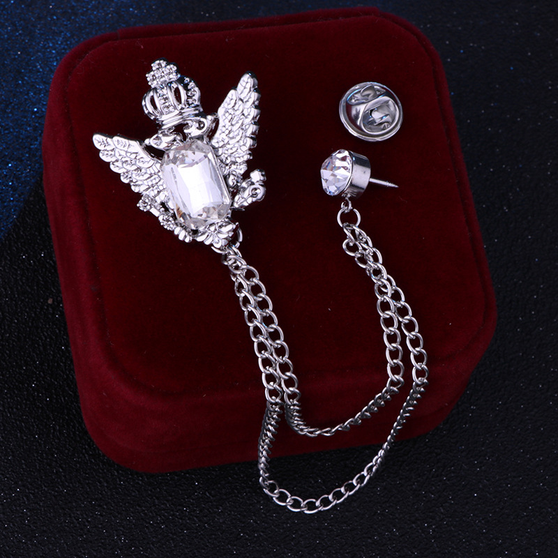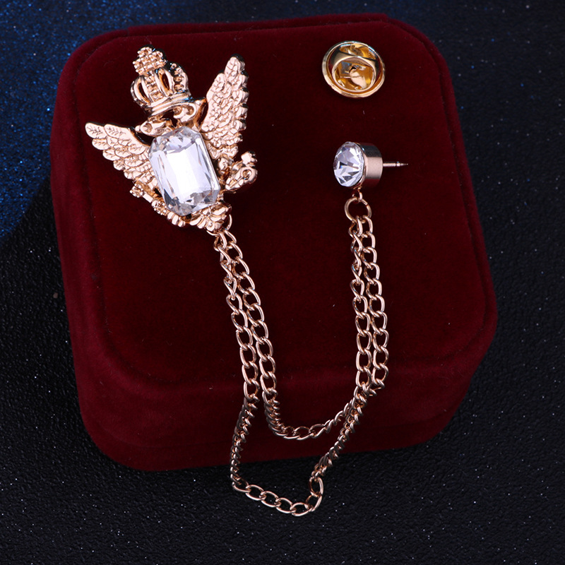 Vintage College Style Eagle Brooch with Alloy Material and Water Diamond Tassel Chain for Men