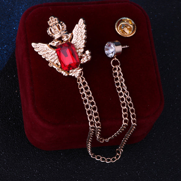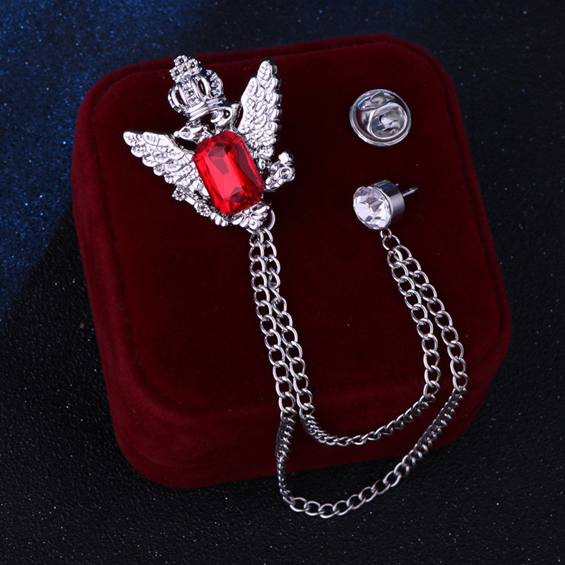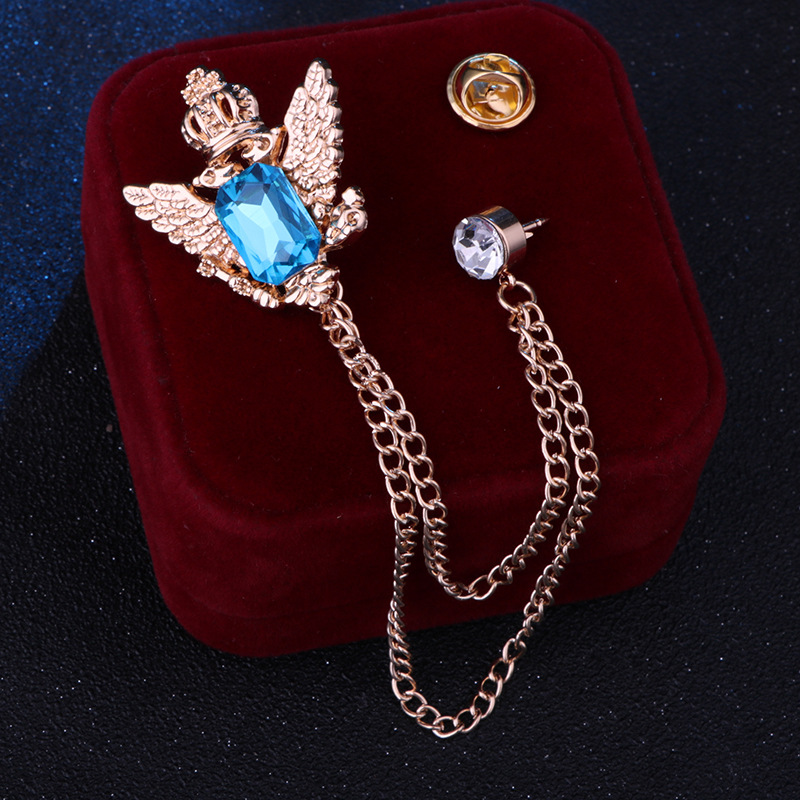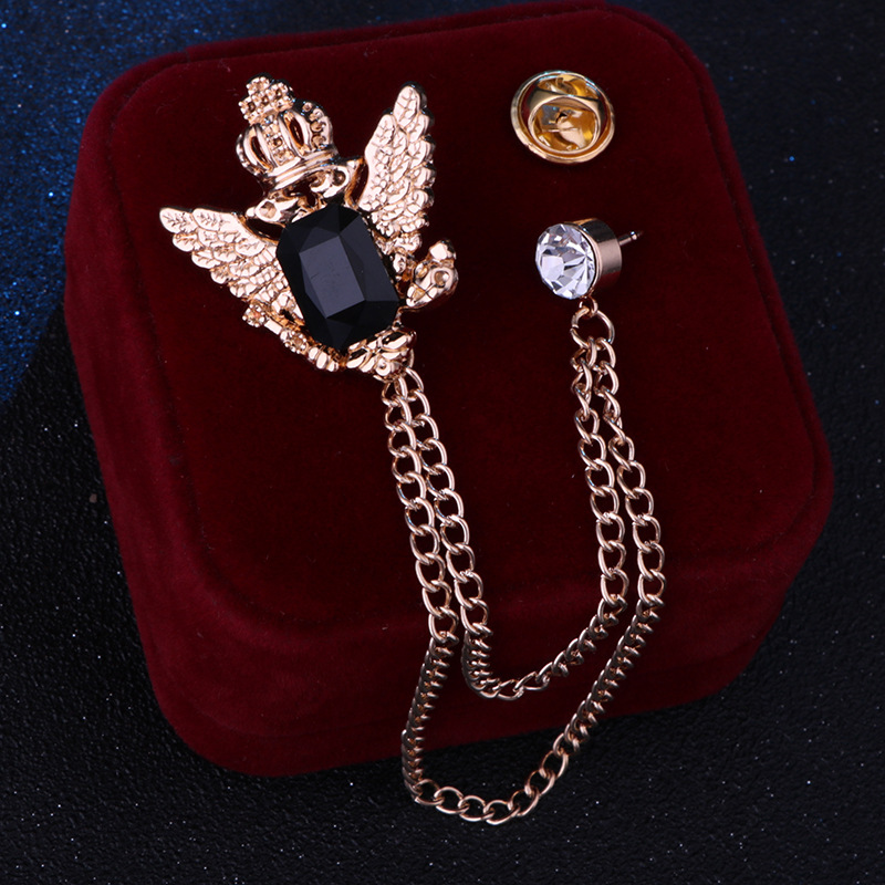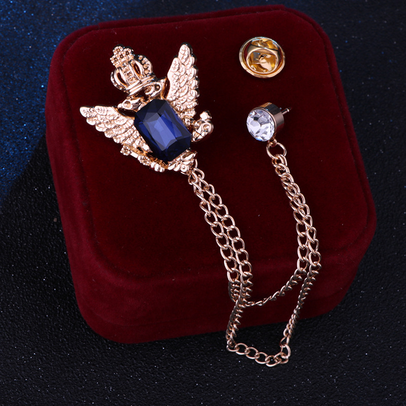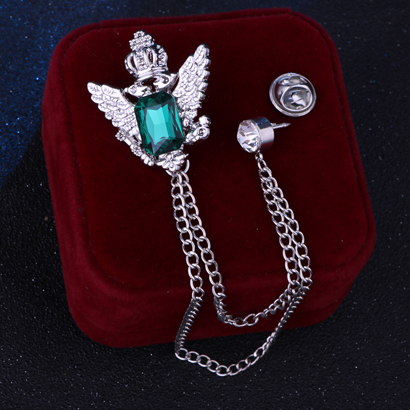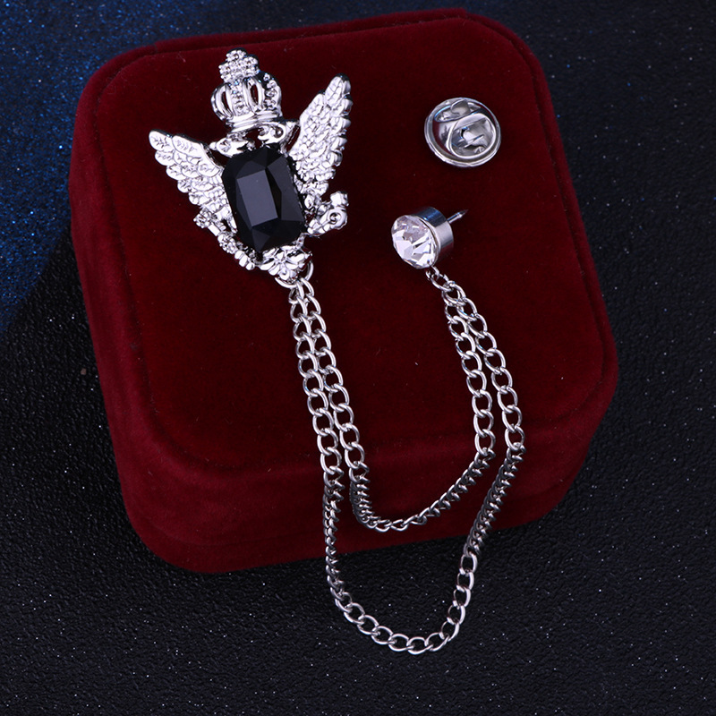 Vintage College Style Eagle Brooch with Alloy Material and Water Diamond Tassel Chain for Men