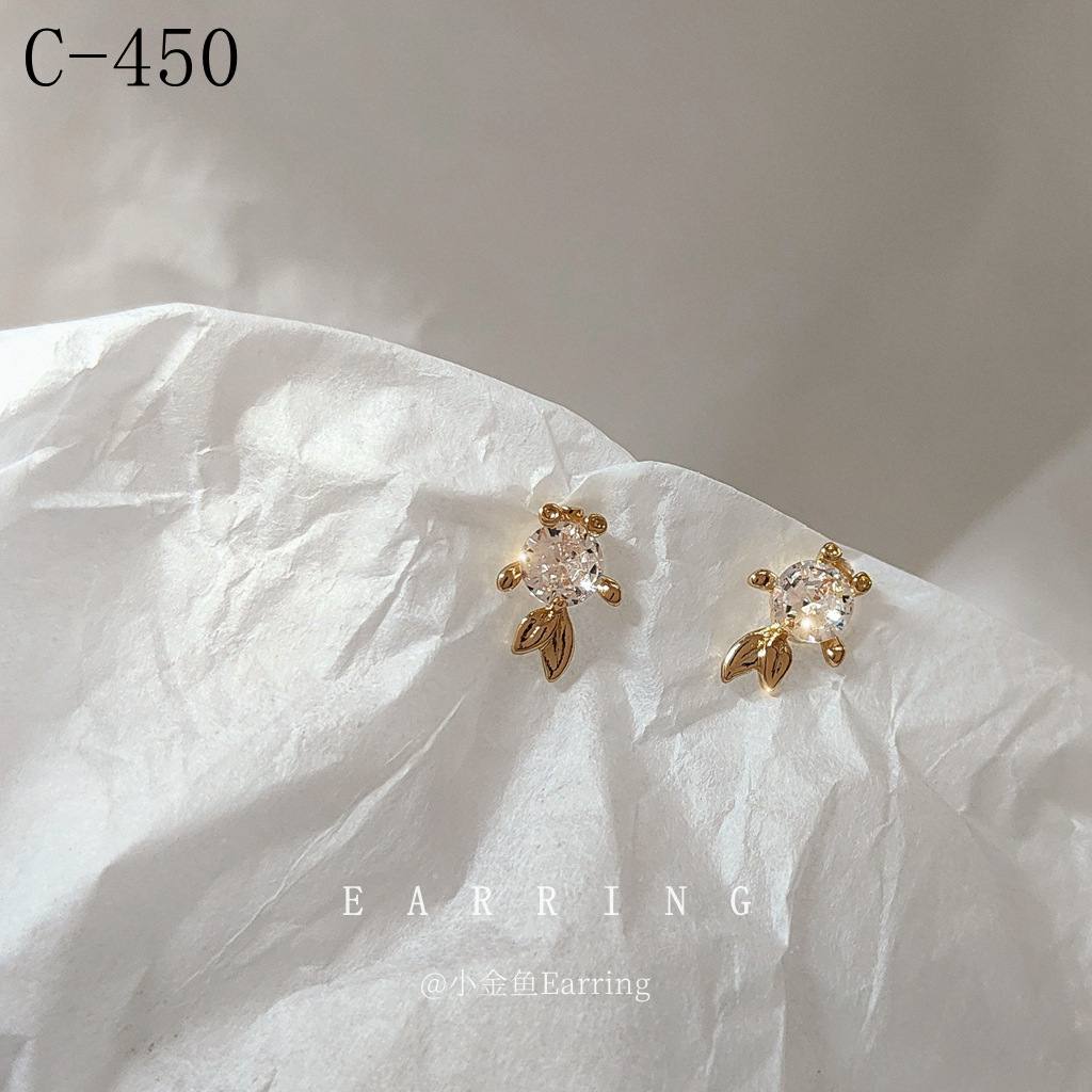 - ["Made of high quality 925 silver and 14K plating","Unique design with cute and fresh style","Mini zircon goldfish shape, fashionable and eye-catching","Suitable for women, perfect for daily wearing","Factory earrings, good quality and affordable price"]