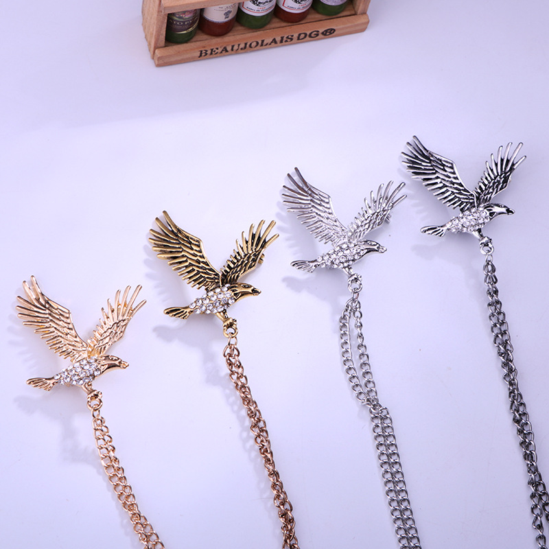 Men's Retro Eagle Brooch with Diamonds, Korean Style Fashion Accessories Factory Direct Sales