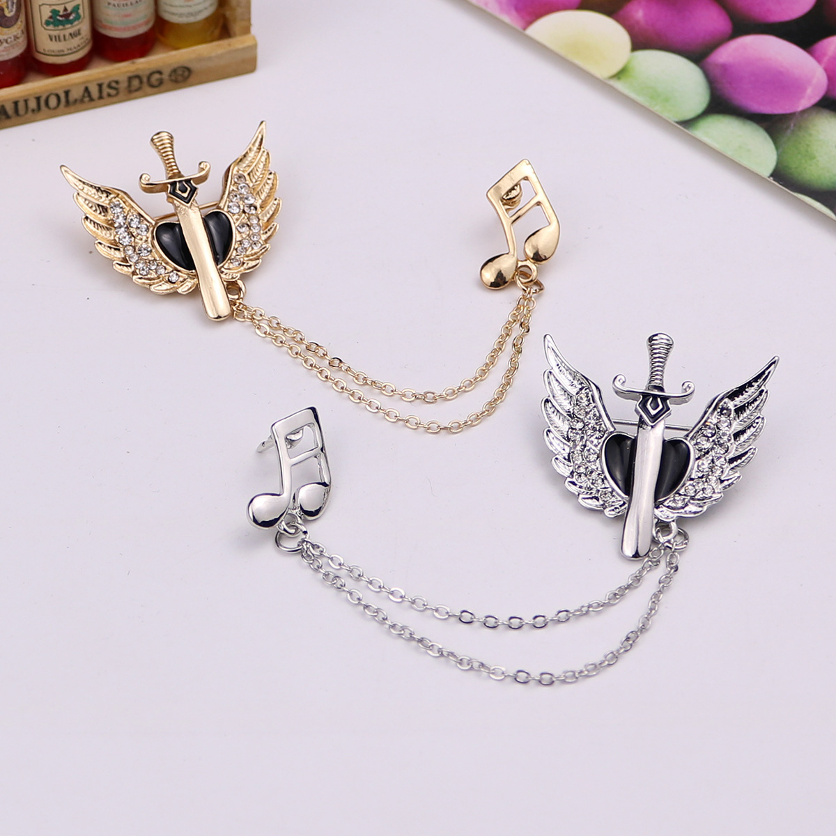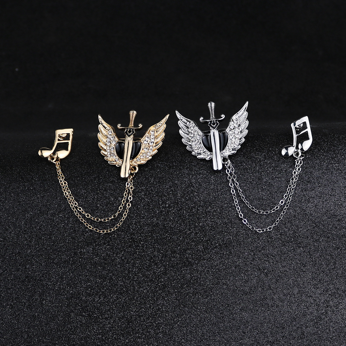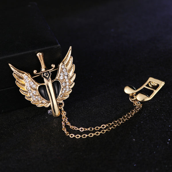 Retro Sword Brooch with Angel Wings for Men's Suit