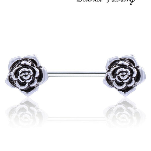Retro Rose Flower Body Piercing Jewelry with Unox Metal, European and American Style, Logo Printing Available, Men and Women Universal Style, Floral Pattern, Electric Plating Process, Suitable for Business Opening Gift, Employee Benefit, Exhibition Promot