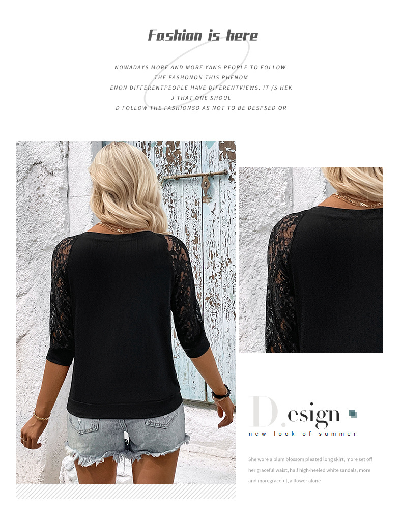 - ["Made of premium linen material, soft and comfortable to wear","Unique lace splicing design, make you look more attractive","Crew neck and five-point sleeve, classic and fashionable","V-letter decoration, make you look more stylish","Regular style, suitable for all occasions"]