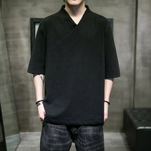 Men's Chinese Style Cotton T-shirt Summer Thin Short Sleeve Five-Point Sleeve Hanfu Shirt