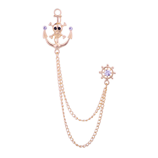- ["High quality alloy material","Unique western style design","Skull head, anchor chain and tassel brooch decoration","Electroplating craftsmanship","Individual packaging"]