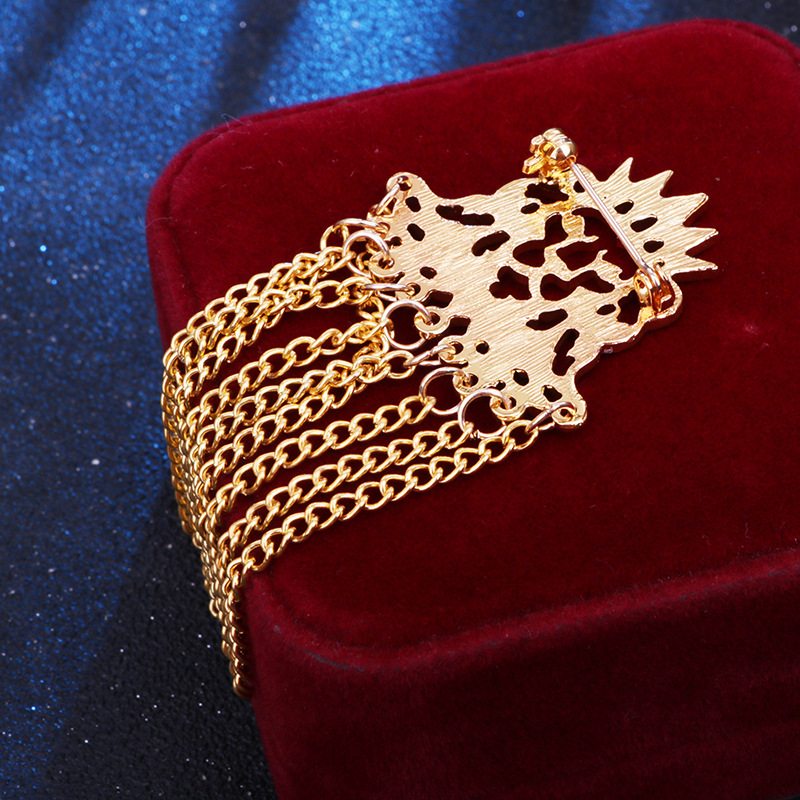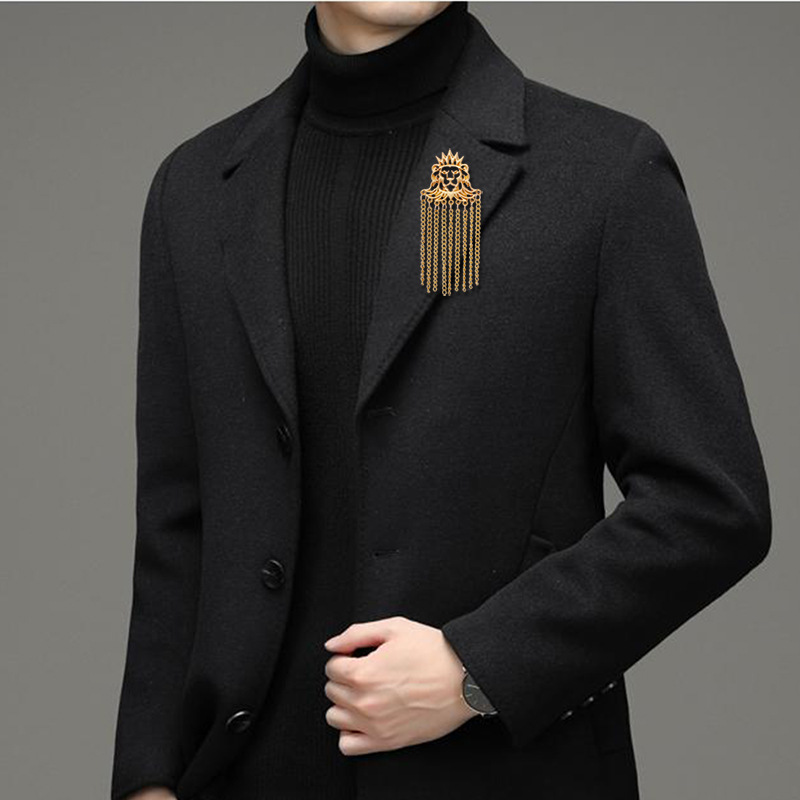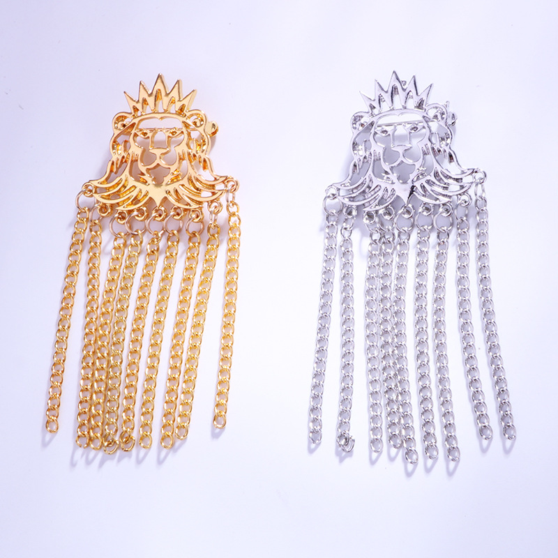 African Lion Brooch with Tassel Chain Crown Flower for Men Personalized Lion Badge for Women's Coat Accessories