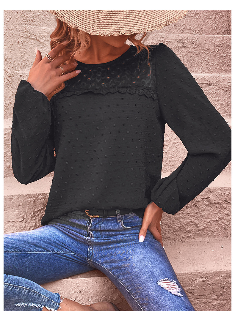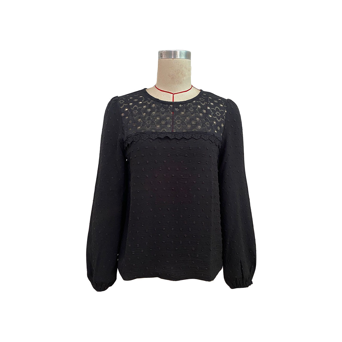 Autumn New Women Floral Blouse Long Sleeve Patchwork Shirt with Embroidery