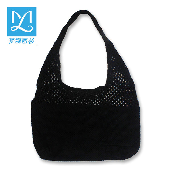 Chic Women's Korean Style Knitted Bag with Single Shoulder Strap and Hollow Pattern