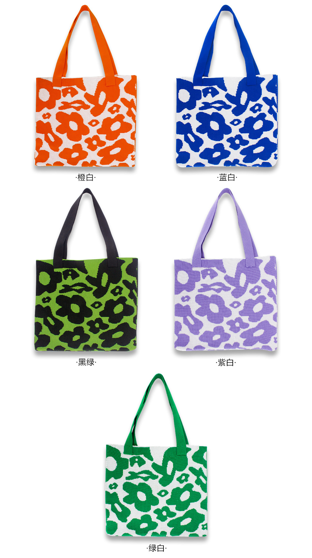 {"Style":"Fresh and Sweet","Layered":"No","Pattern":"Floral","Bag Size":"Large","Bag Type":"Open Top Bag","Hardness":"Soft","Material":"Polyester","Bag Shape":"Vertical Square","Carrying Parts":"Soft Handle","Opening Method":"Open Mouth","Bag Trend Style":"Tote Bag","Fashion Element":"Knitting, Flowers, Color Blocking","Processing Method":"Machine Knitting","Market Year & Season":"Summer 2022"}