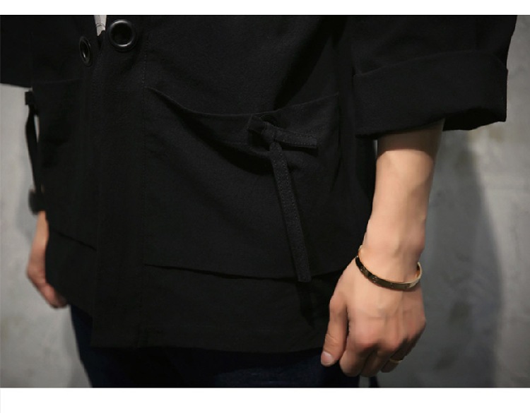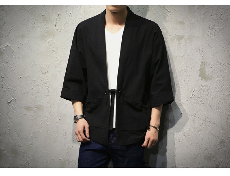 - ["Men's Chinese-Style Cotton Linen Hanfu Jacket is perfect for summer fashion","Loose fit for a comfortable fit","Mouth bag decoration adds a unique touch to the jacket","High quality fabric for a soft and comfortable feel","Available in a variety of sizes to suit your needs"]
