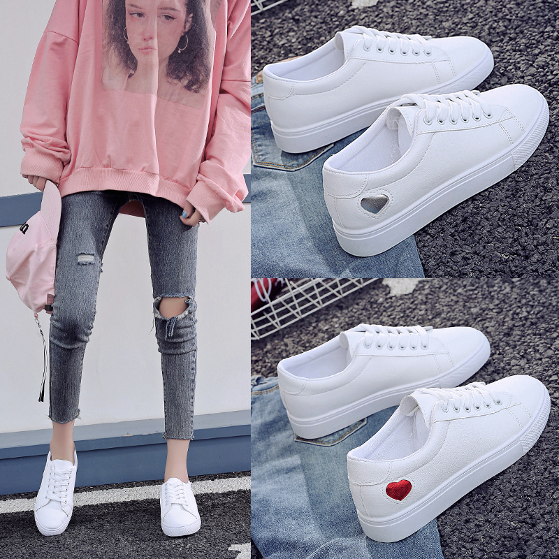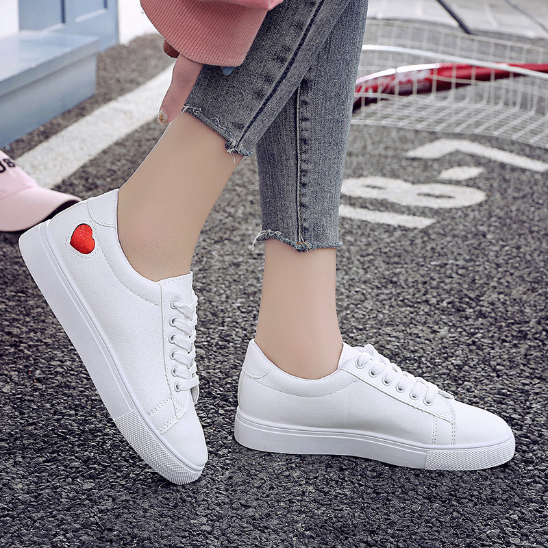 Women's PU Low-Heel Shoes, Korean Style Casual Shoes with Floral Embroidery, Breathable and Comfort