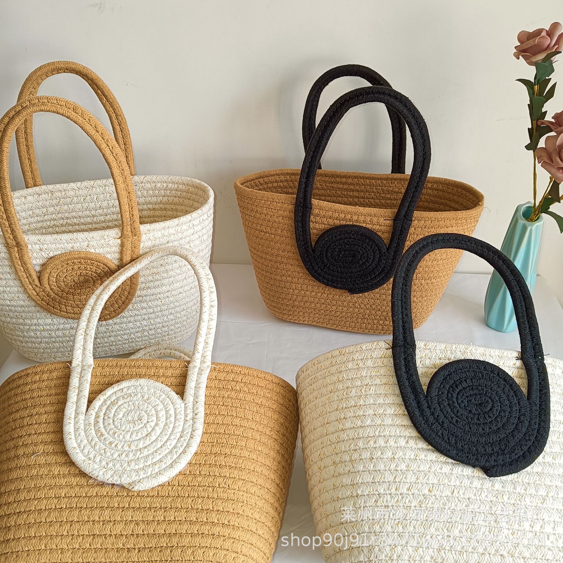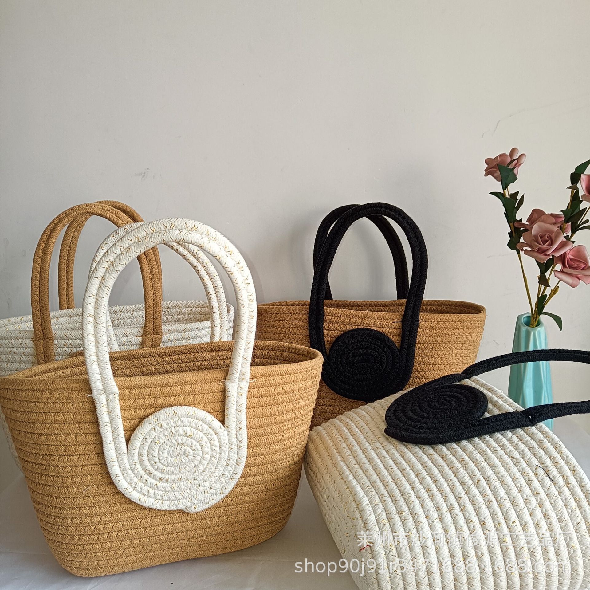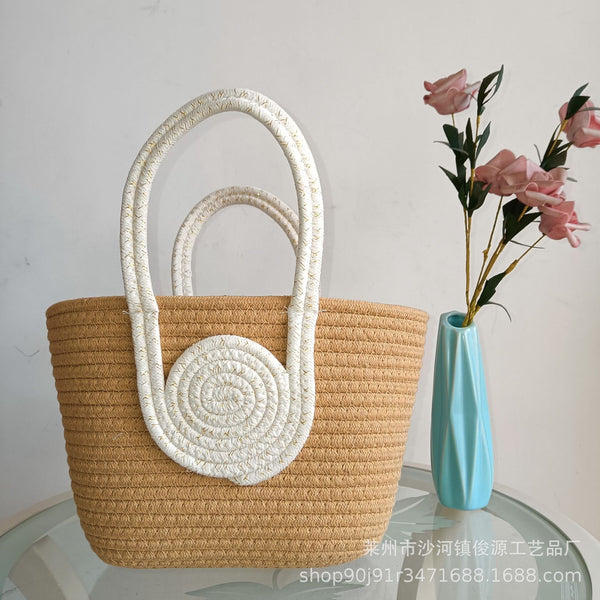 Fashionable Simple Woven Bag with Double Handle and Cotton Thread for Casual Women