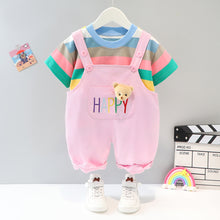 Summer Striped Baby Boys and Girls Casual Suspender Pants Outfit Set for Age 1-3 Years