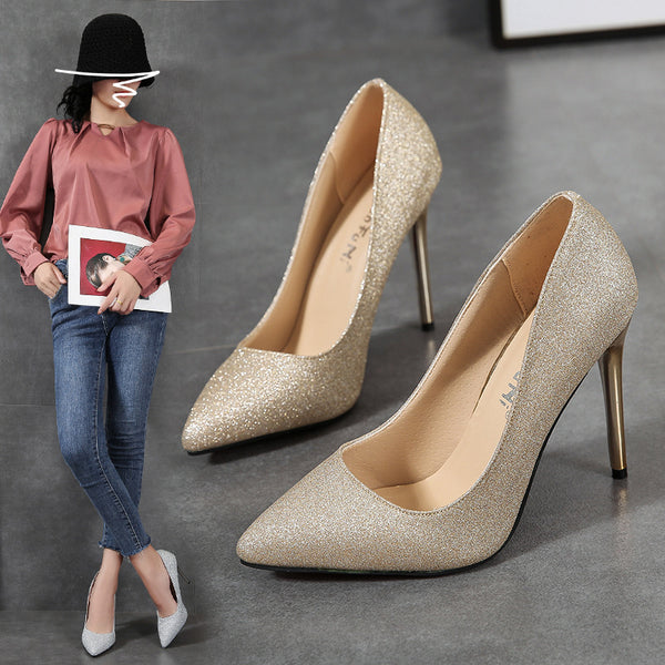 Fashion Women PU High Heels with Shining Beads, Waterproof Platform and Low Heel, Perfect for Everyday Wear