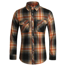 Men's Plaid Long Sleeve Shirt with Double Pockets, 20 Count Fabric, English Style, Open Style, All-match Type, Long Sleeve, Grid Pattern