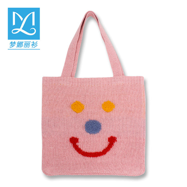 Lovely Smiling Face Double Sided Tote Bag Shoulder Bag Casual Portable Handbag for Women