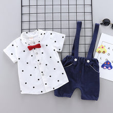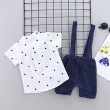{"Style":"Korean Version","Hooded":"No Hood","Origin":"Zhejiang","Element":"Suit, Suspender, Openable","Pattern":"Dots","Age Range":"Infants and Toddlers (1-3 years, 80-100cm)","Suit Type":"Pants Suit","Thickness":"Thin","Fabric Name":"Cotton","Pant Length":"Shorts","Safety Level":"Class B","Actual Photos":"Actual photos without models","Closure Style":"Single Breasted","Sleeve Length":"Short Sleeve","Suitable Height":"80cm, 90cm, 100cm, 110cm, 80cm-110cm/1 set of 4","Gift Box Content":"Clothing","Fabric Craftsmanship":"Frosting, Shearing","Gender Applicability":"Male","Market Year & Season":"2023 Summer","Seasonal Suitability":"Summer","AQL Inspection Standard":"1.0","Main Fabric Composition":"Cotton","Number of Pieces in Set":"Two-Piece Set","Trimmed Ends/Loose Threads":"All Trimmed Neatly","Needle Pitch 12~14 Needles/3cm":"No","Main Fabric Composition Content":"93"}