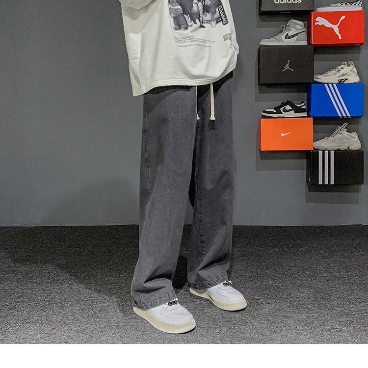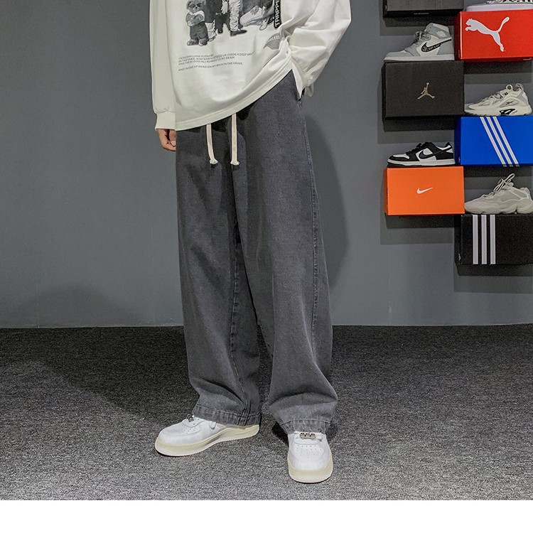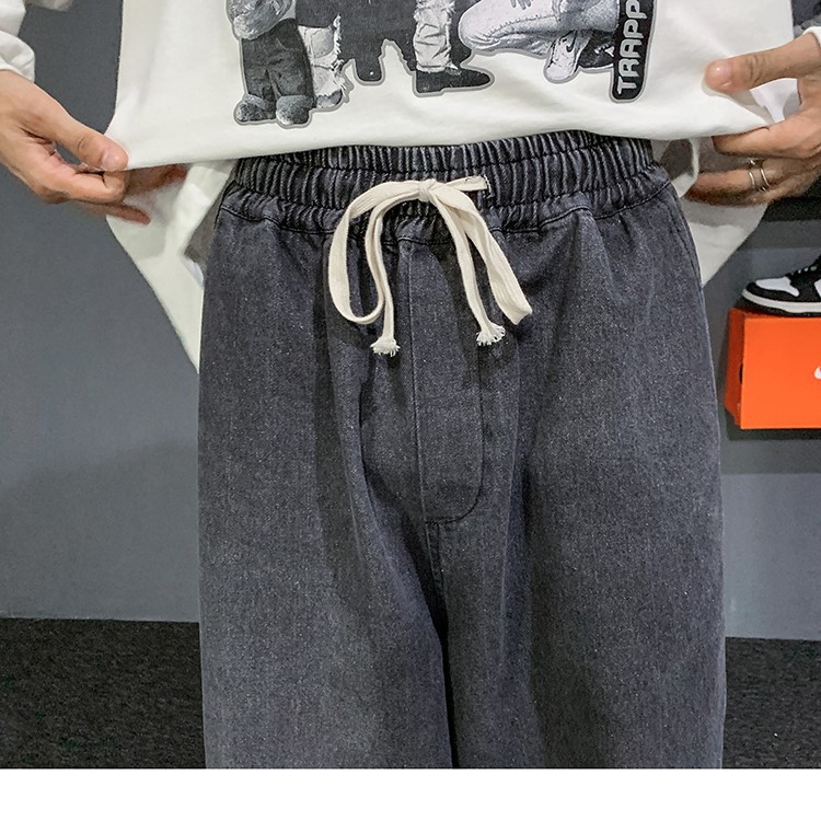 Retro Rope Black Jeans for Men, Fashion Casual Long Pants, Autumn and Winter Plus Size
