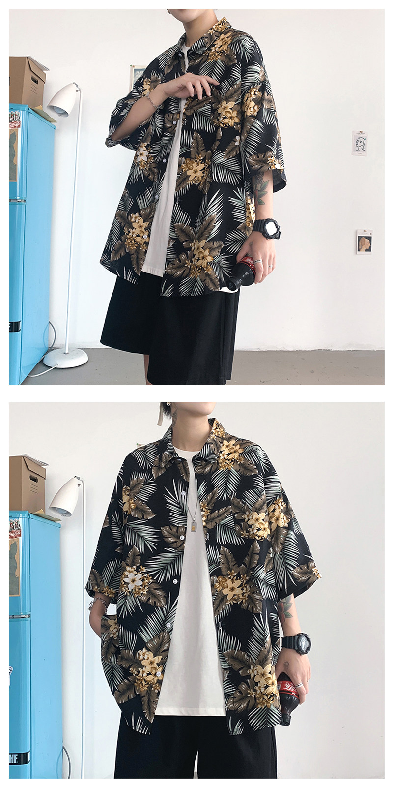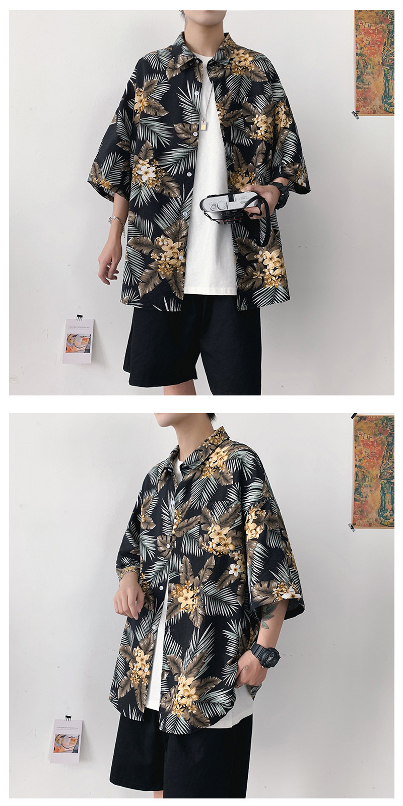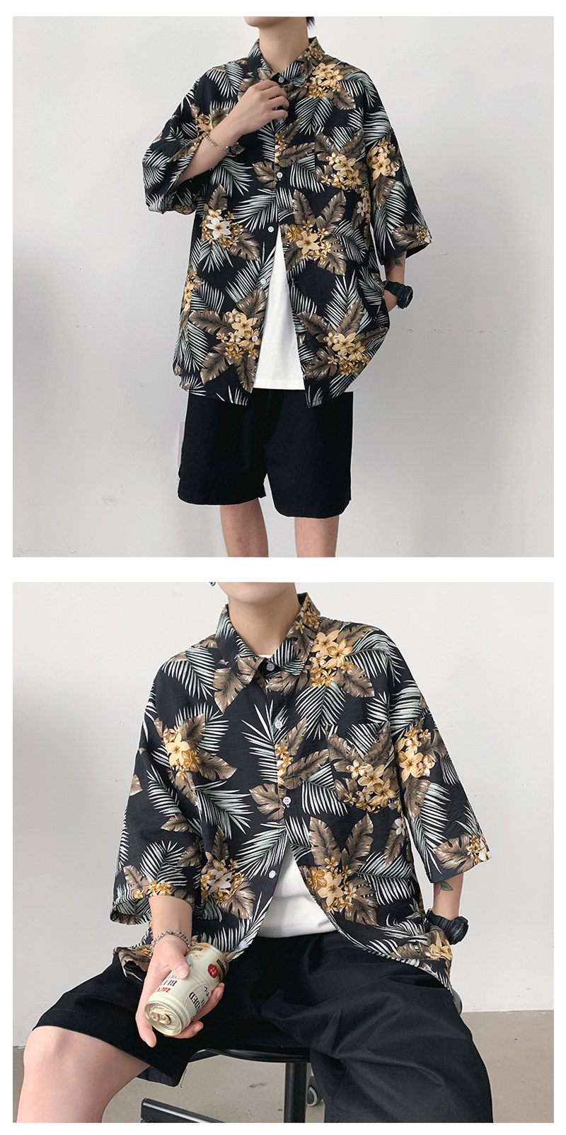 Men's Fashionable Floral Printed Slim Fit Shirt for Summer