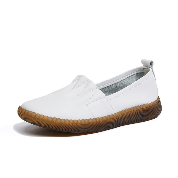 Women's Korean Style Summer Shoes - Low Heel, Round Toe, 2-Layer Leather Upper