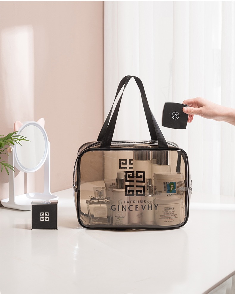 60D Transparent PVC Foldable Makeup Bag Travel Cosmetic Organizer with Large Capacity for Cosmetics and Toiletries