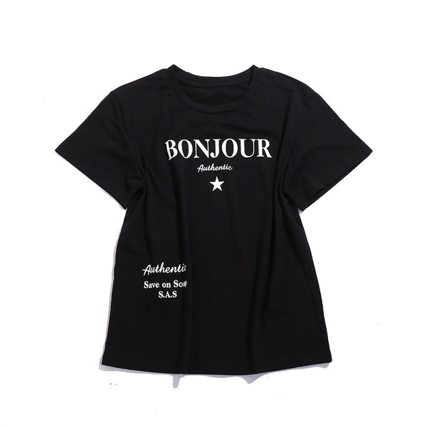 Women's Summer Letter Print T-Shirt, 95% Cotton, Round Neck, Casual Style, Breathable and Comfortable