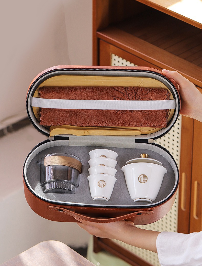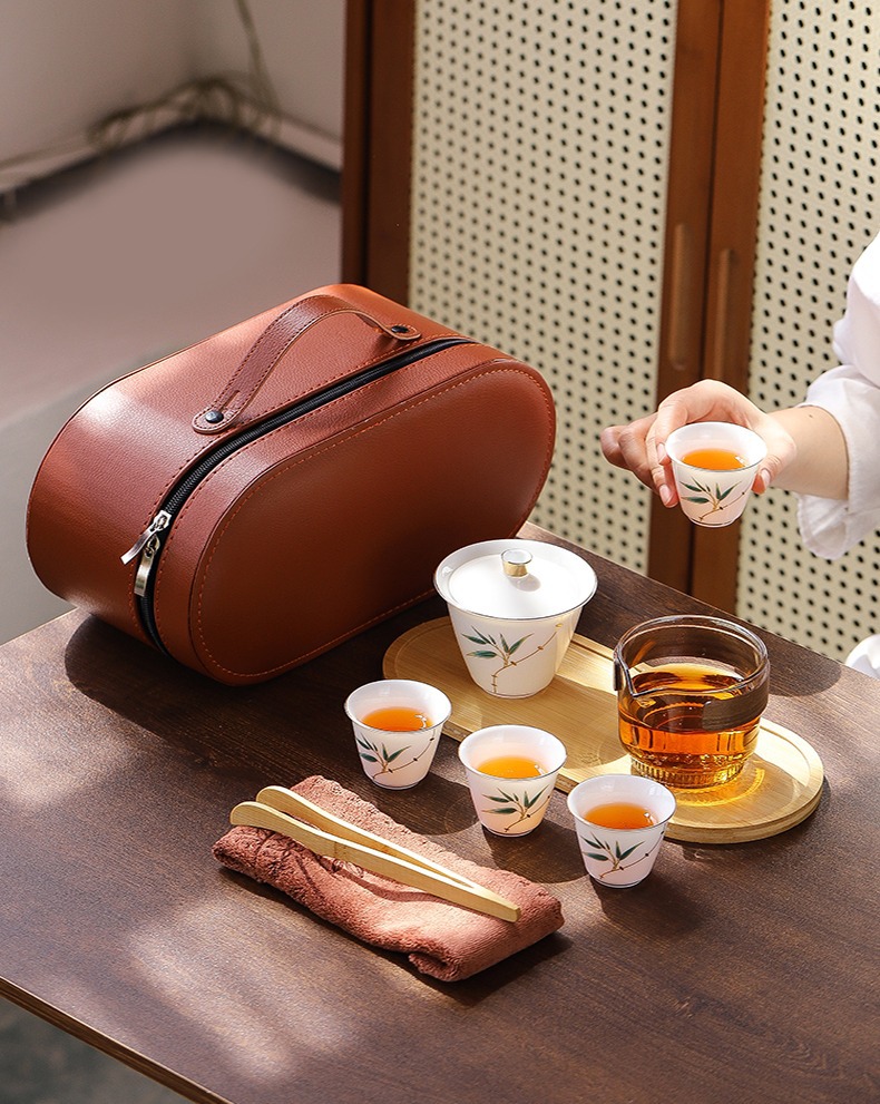 Portable Porcelain Tea Set, 4 Cups and 1 Teapot with Lid, Perfect for Travel and Outdoors