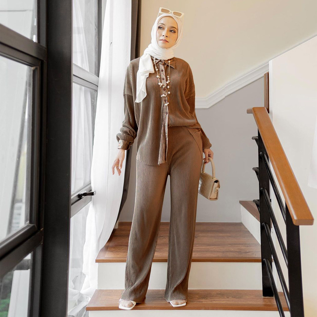 Factory Directly Selling Women's Fashionable Wrinkled Loose Pants Suit from Malaysia and Indonesia