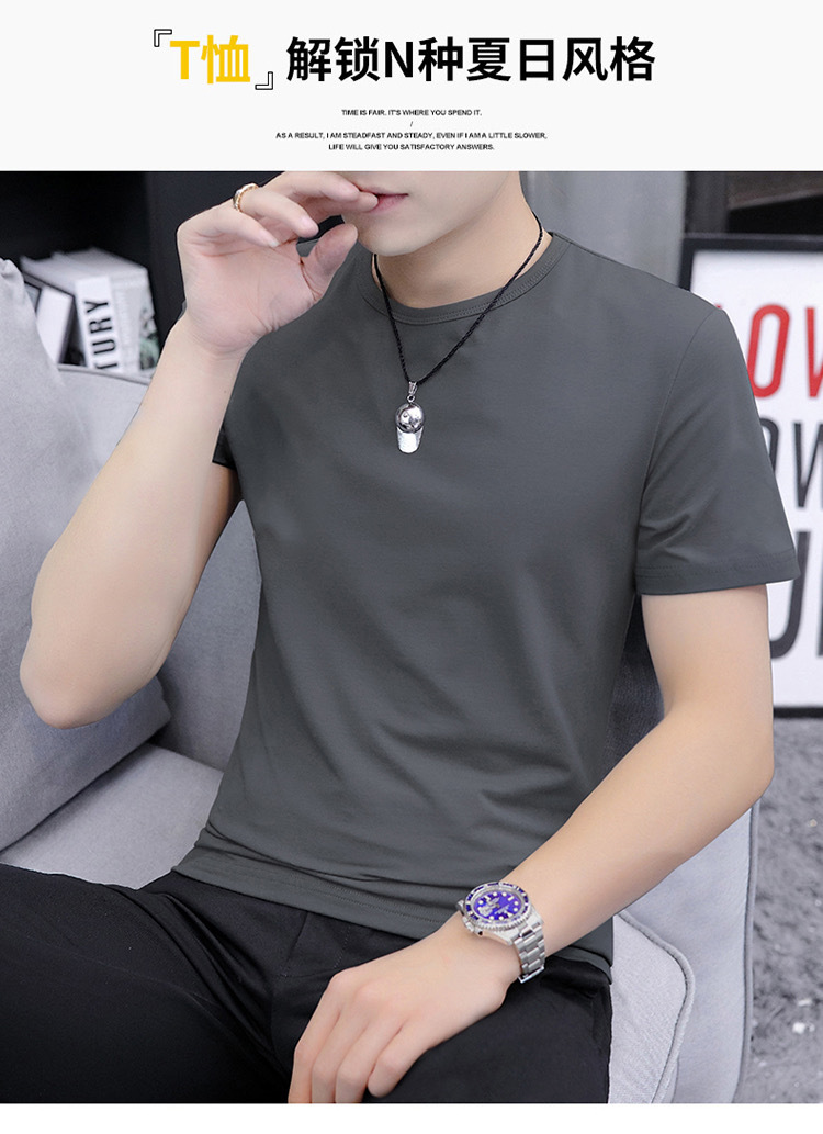 Men's Summer Korean Style Slim Fit Solid Color Short Sleeve T-Shirt