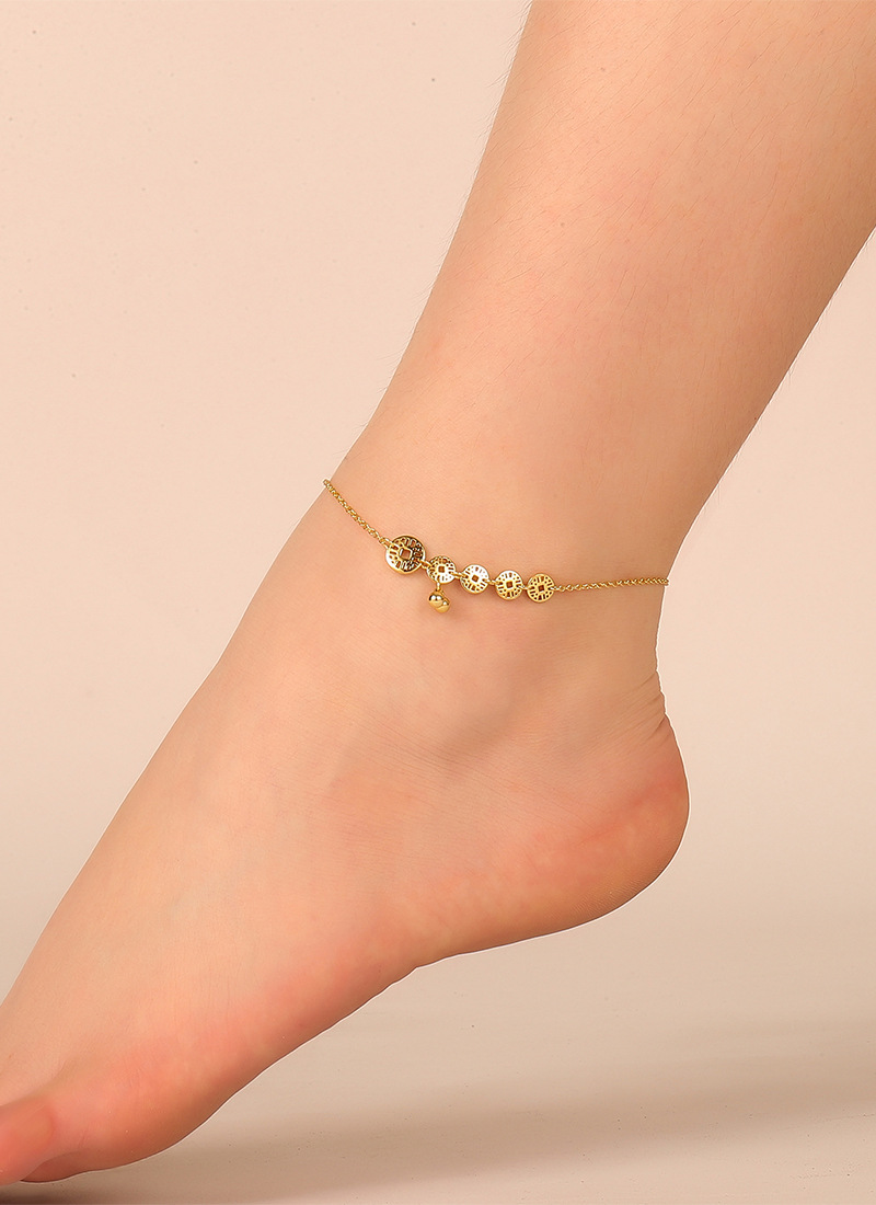 Women's 18K Gold Hollow Coin Anklet European and American Style High-end Design Foot Jewelry for Travel Souvenir
