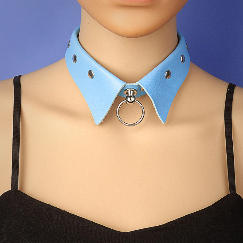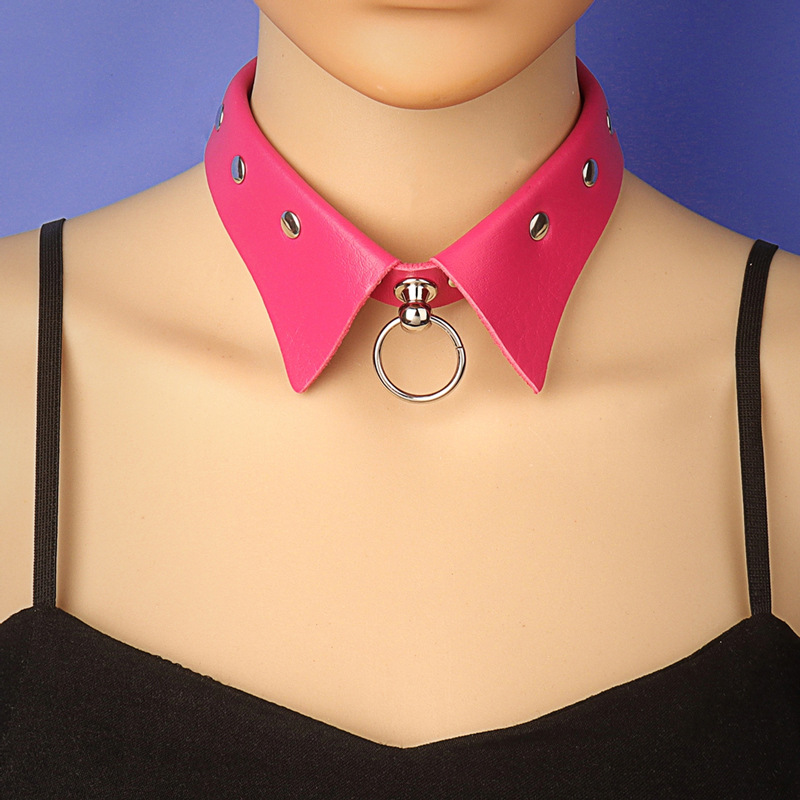 Fashionable Punk Gothic Leather O-Necklace with Round Circle Pendant