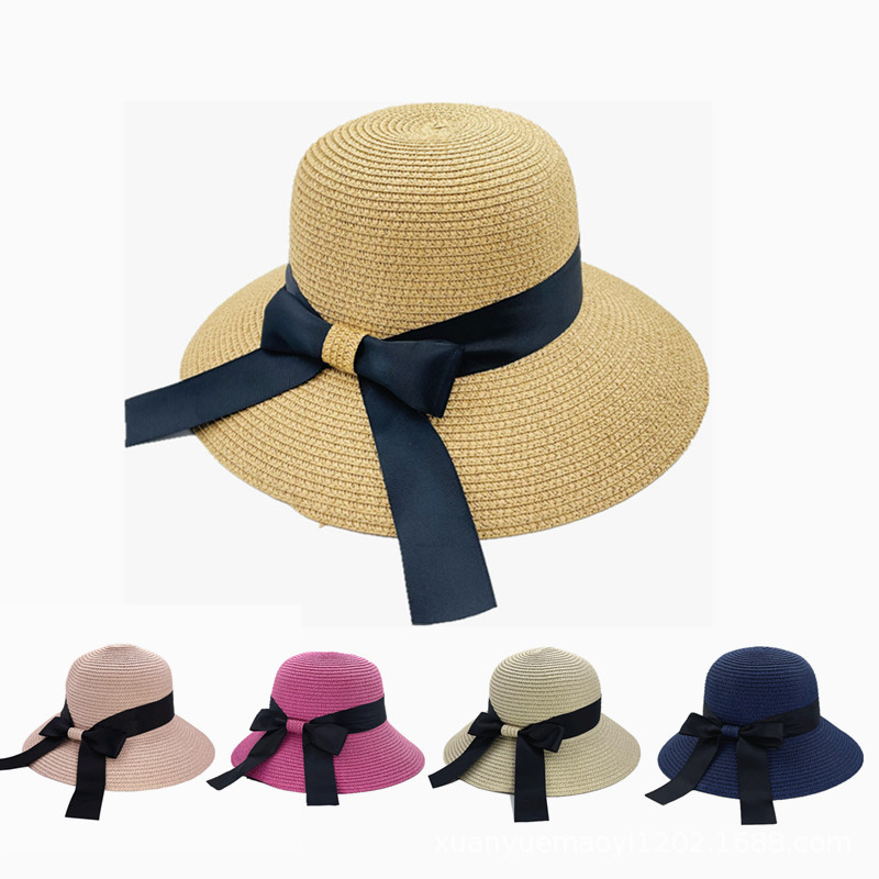 Women's Summer Straw Hat with Bowknot, Perfect for Outdoors and Travel