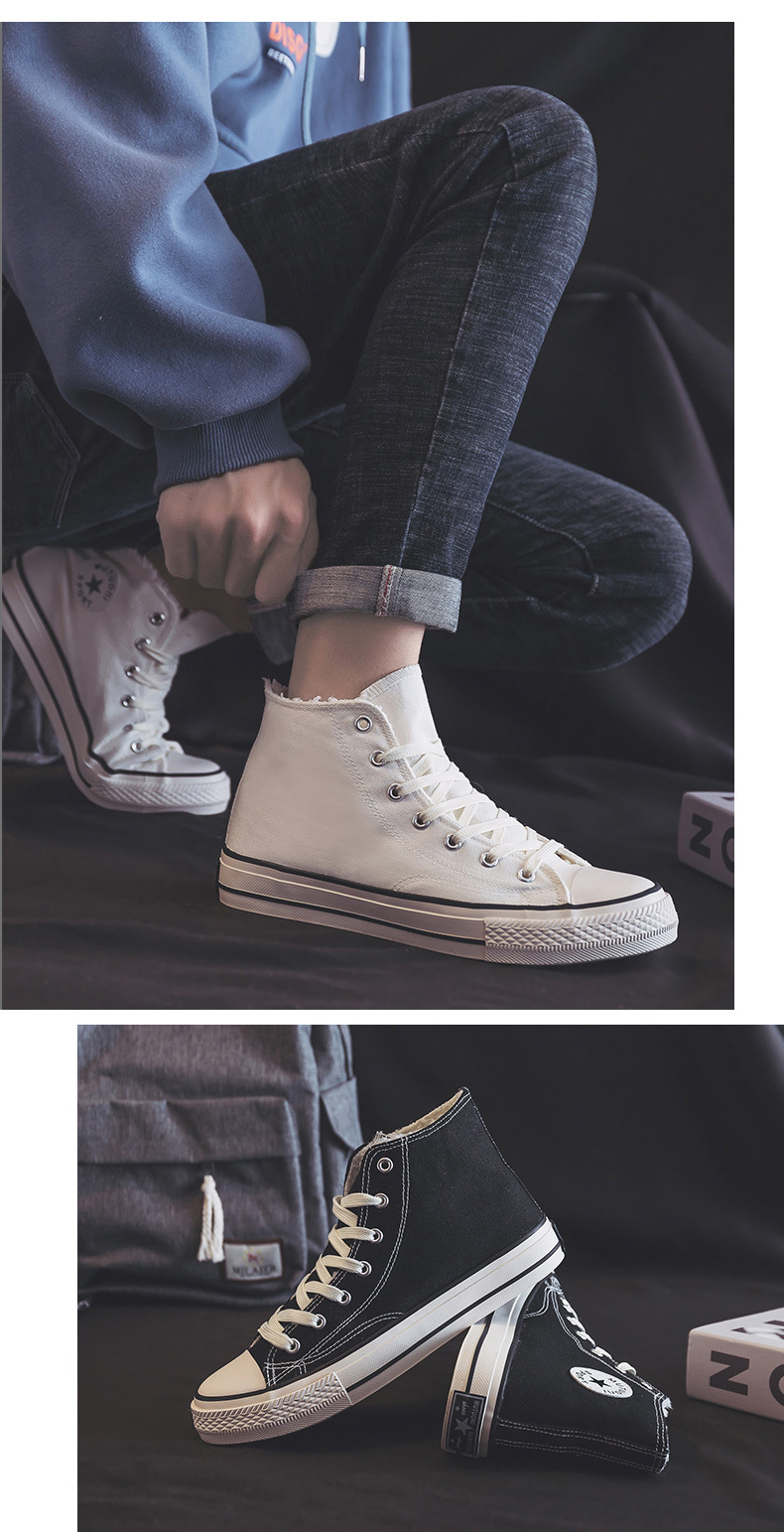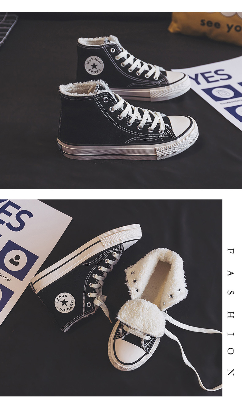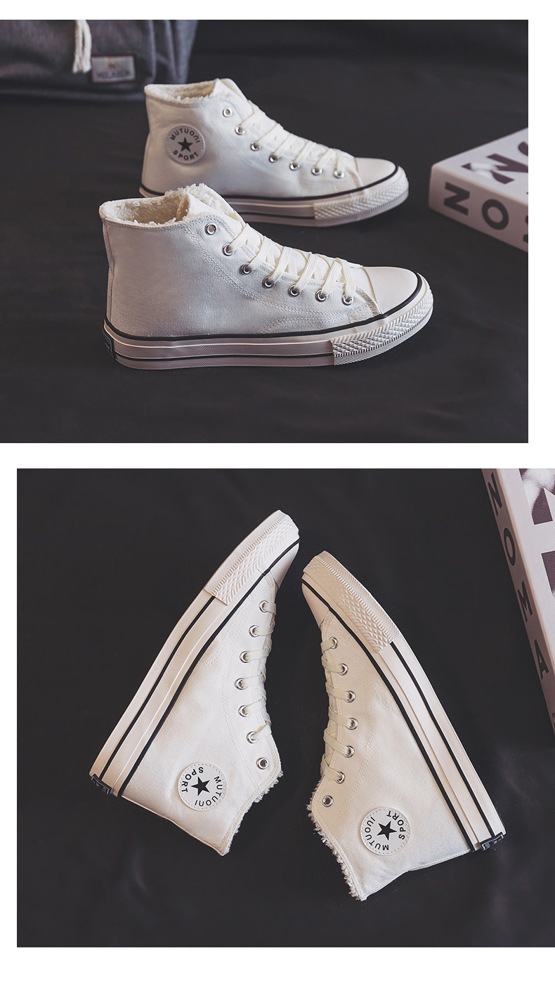 Autumn Winter Plush Cotton Shoes High-top Retro Thick Warm Couple Shoes 1970s Classic Canvas Shoes