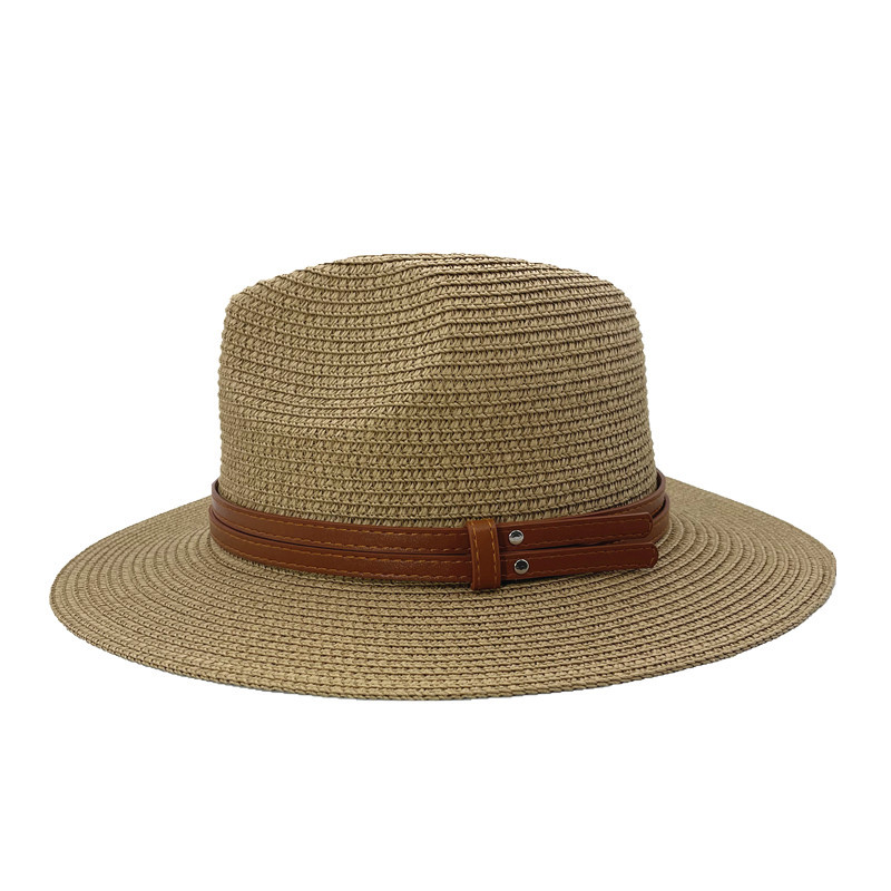 Panama Straw Hat with Double Buckle for Men and Women, Breathable, Windproof, Sun Protection, Summer Hat