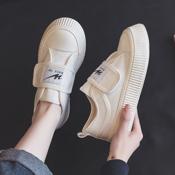 Women's Classic Low Heel Magic Tape Buckle Canvas Sneakers for Spring