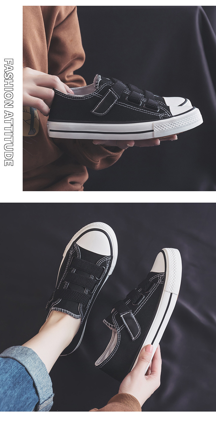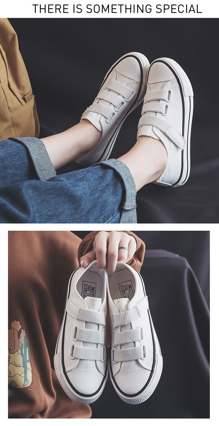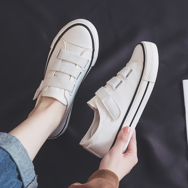 Women Magic Tape Low-top Canvas Shoes with Korean Style, Suitable for Adults, Breathable, Non-slip, Lightweight
