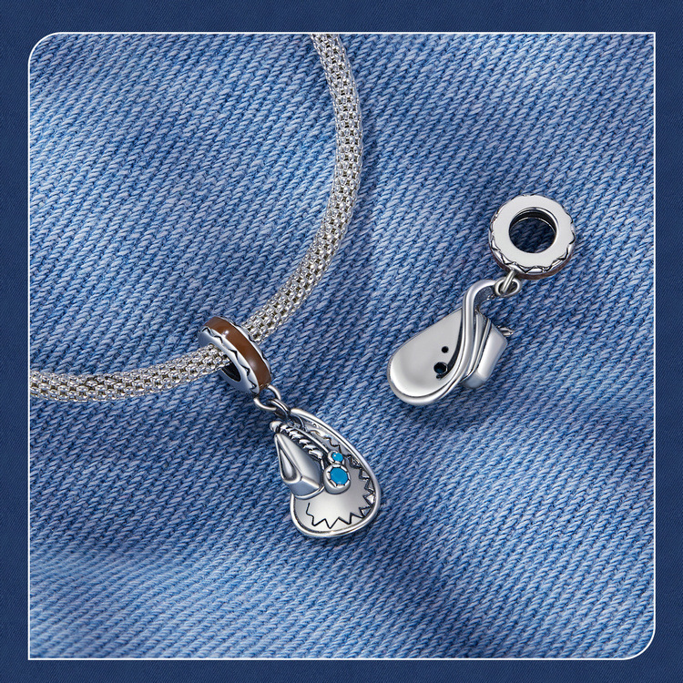 DIY Silver S925 Personalized Cowboy Hat Pendant Accessories for DIY Necklace Beads