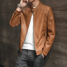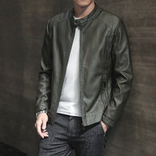 Men's Fashion Casual PU Leather Jacket with Stand Collar and Zipper Closure