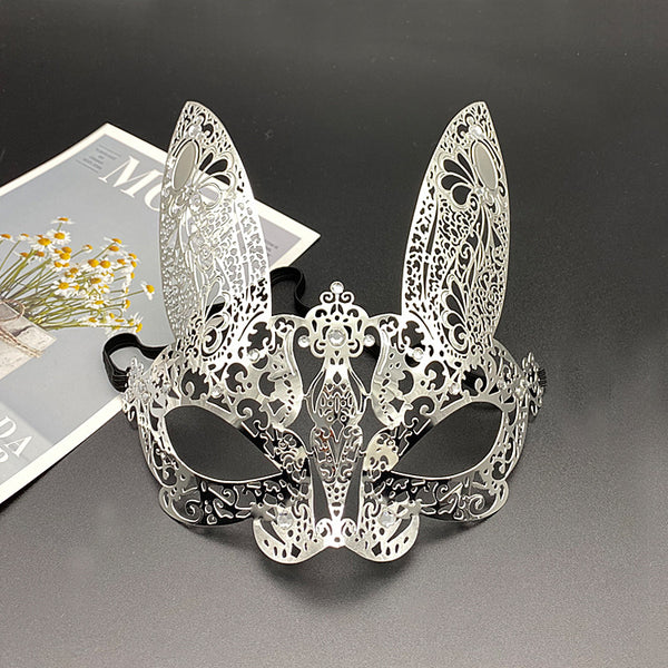 Venetian Masquerade Mask with Diamonds and Gold Metal Iron Face Rabbit Gold Color Adults Half Face Mask for Women Halloween Props