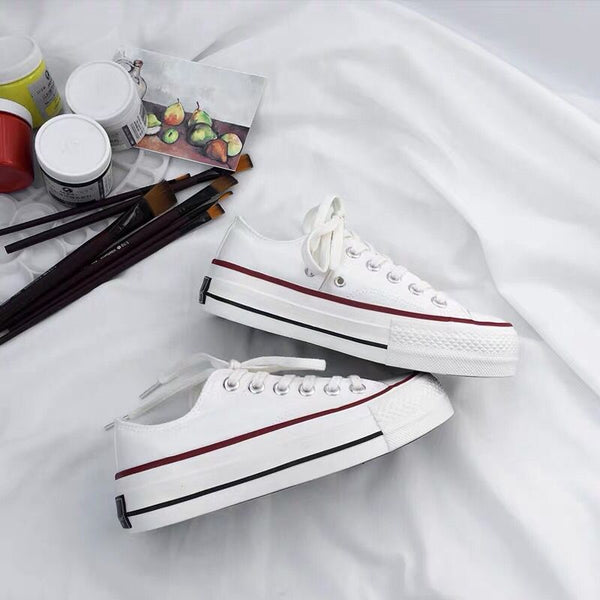 - ["Made of high-quality canvas material, comfortable to wear","Low heel and anti-skid design for safety","Fashionable Korean style design for adults","Suitable for autumn and spring seasons","Easy to wear with front lacing"]