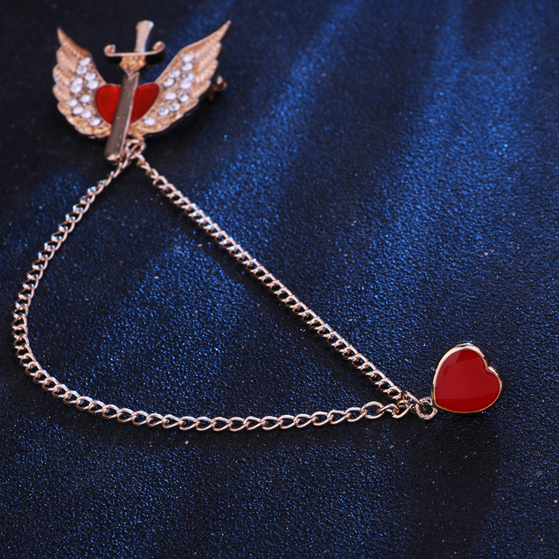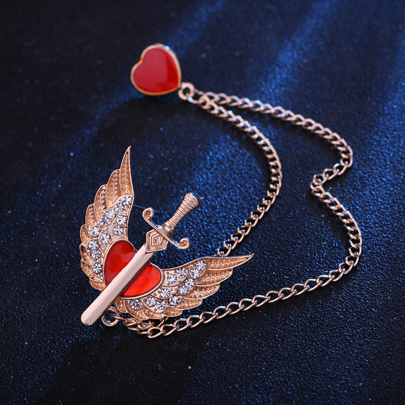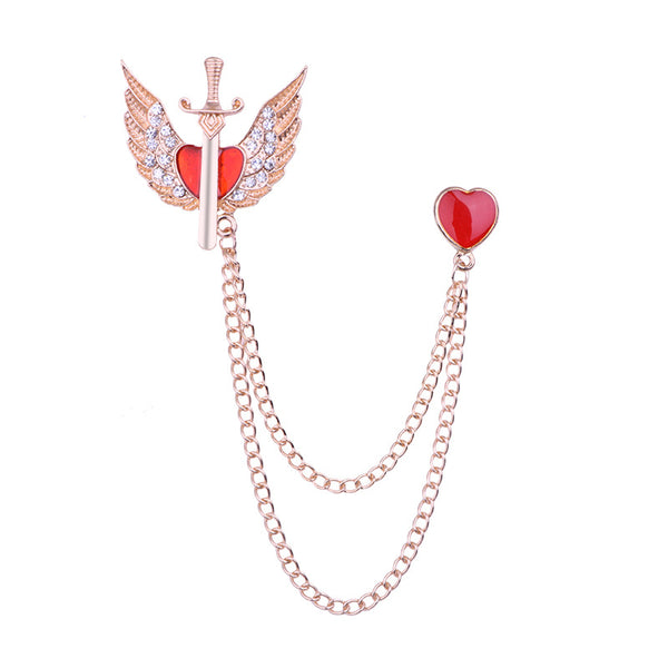 Angel Wings Brooch with Heart-shaped Pendant for Lovers