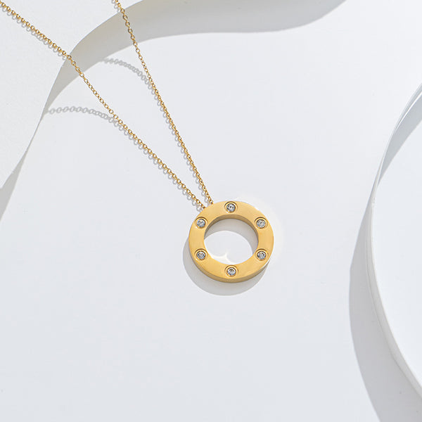 Titanium Steel Round Zircon Necklace with Stylish Chain for Women