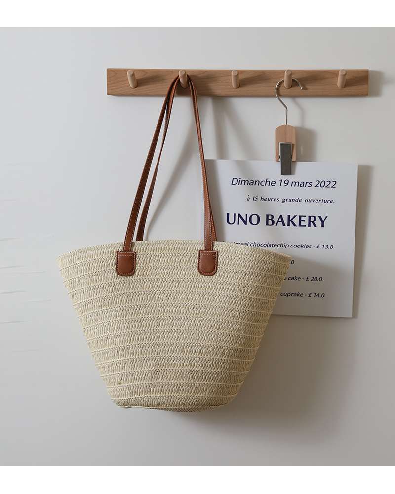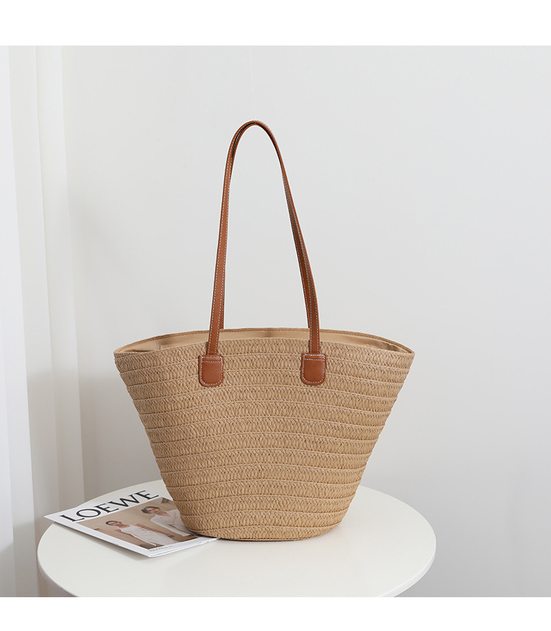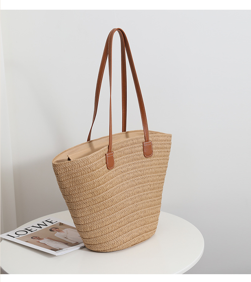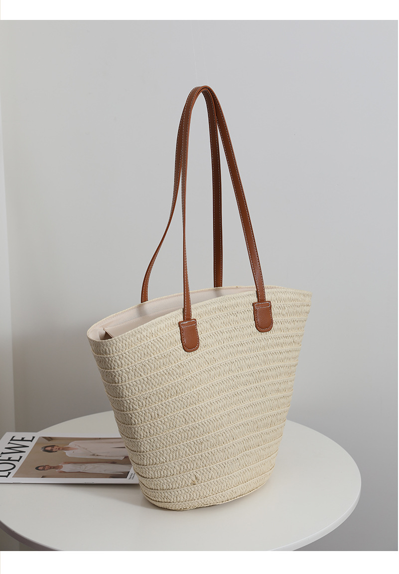 - ["Made of high quality straw weaving material","Large capacity and double handles for easy carrying","Fresh and stylish design perfect for everyday use","Straight shape with drawstring closure","Suitable for beach, vacation, and everyday use"]