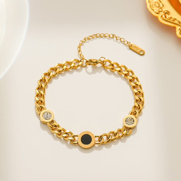 - ["18K Gold Plated Titanium Steel Roman Chain Bracelet for Women","Simple and Minimalistic Design","Ins Style","High Quality Material","Employee Benefits"]