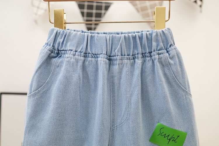 {"Style":"Jeans","Waist":"High Waist","Origin":"Jiangsu","Pattern":"Animals, Solid Color, Cartoon, Avatar, Alphabet, Dots","Elements":"Sports, Stripes, Cartoon, Letters, British, Parent-child, Military, Fashion","Age Range":"Older Children (8 years old and above, 140cm and above)","Fabric Name":"Denim","Open Crotch":"No","Pant Length":"Five-Finger Pants/Mid-Length Pants","Pant Closure":"Elastic Waistband","Safety Level":"Class B","Actual Photos":"Actual photos without models","Suitable Height":"100cm, 110cm, 120cm, 130cm, 140cm, 150cm, 160cm","Fabric Processing":"Soft Treatment, Enzyme Wash","Trimmed Frayed Ends":"Clearly trimmed","Gender Applicability":"Male","Seasonal Suitability":"Summer","Market Year and Season":"Summer 2021","AQL Inspection Standard":"2.5","Main Fabric Composition":"Cotton","Needle Pitch 12~14 Needles/3cm":"Yes","Main Fabric Composition Content":"85"}