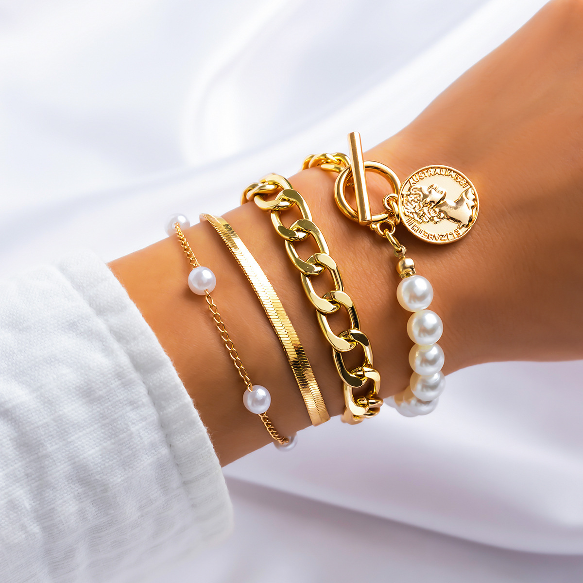 - Vintage Pearl Chain Bracelet...