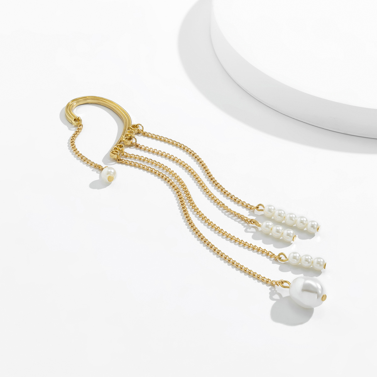 - ["Unique ear clips design with punk style","Made of high quality alloy material","No ear hole design, stylish and comfortable to wear","Single studs with pearl tassel, fashionable and eye-catching","Suitable for any occasions, perfect for a gift"]